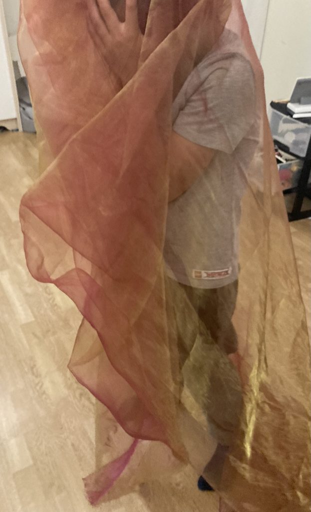 Séance tissu, découvrir la douceur, la confiance, l’environnement, le toucher.